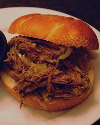 Remove meat & shred with a fork. Keep warm. Strain broth & skim off fat. Serve on rolls & use broth for dipping.