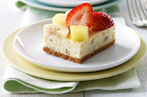 BAKE 30 min. or until center is almost set. Cool. Refrigerate at least 3 hours. Serve topped with the strawberries, sliced bananas and pineapple.