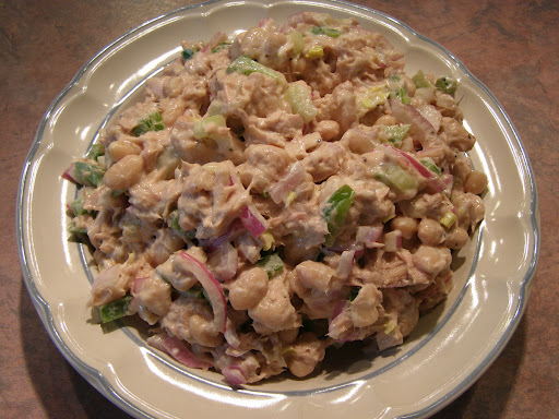 Pour tuna into bowl and break up with fork. Stir in onion, celery, green pepper & beans. Season to taste with salt & pepper. Toss thoroughly with olive oil, vinegar and Miracle Whip. Chill 1 hour before serving.