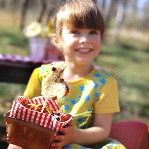 Spread a small amount of peanut butter on bottom of a currant. Place a currant "eye" on each rooster sandwich. Wrap and chill up to 1 hour. Serve with spreadable fruit mixture as a dipping sauce. Makes 6 sandwiches.
