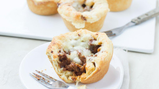 3 Separate dough into 8 biscuits. Press each biscuit with fingers until flat; press each in bottom and up side muffin cup. Divide turkey mixture evenly into dough-lined cups. Top each with cheese.