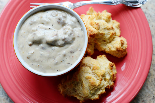 Spoon sausage gravy over warm biscuits and serve immediately!