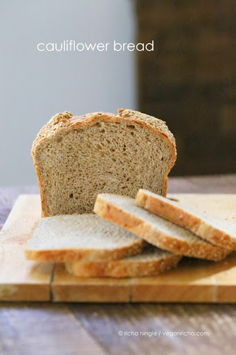 Activate the yeast in 1/4 cup warm water, with sugar. Mix and let sit for 5 minutes or until frothy. Grate, pulse or rice the cauliflower and measure 1 packed cup. I put 1.5 loaded cups small florets in the Blendtec and it game me a cup of cauliflower rice. In a bowl, mix all the flours, salt, spices, grated cauliflower. Add the yeast mixture, oil and a 3/4 cup water and knead into a dough. Add more water if needed. I needed 2 Tablespoons more. Knead for 6-8 minutes. Spray water on top, cover with a towel and let the dough rise until doubled. 1.5-2 hours. Punch the dough down, use a tablespoon or so flour and shape into a jelly roll. Place seam side down in a bread pan.