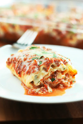 Tent lasagna roll ups with foil (don't allow foil to rest on cheese or it will stick you just want to loosely tent to prevent the cheese from browning) and bake for 35 minutes in preheated oven. Serve warm garnished with additional chopped fresh parsley.