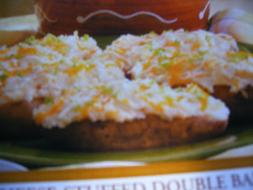 Scrub and pierce potatoes. Bake at 375 for 1 hour or till tender. When cool enough to handle, cut each into half lengthwise; scoop out pulp, leaving a thin shell.