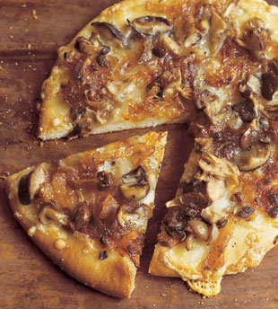 Wild Mushroom Pizza with Caramelized Onions, Fontina, and Rosemary