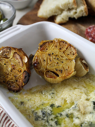 Whole Baked Garlic with Bleu Cheese