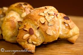 Preheat oven to 375 degrees. Slice the croissants in half. In a food processor, blend 2 oz. of almonds, powdered sugar, vanilla and almond paste. Blend until combined, then add butter and blend again until smooth. Spread the almond paste evenly on the bottom half of the croissant then put the top back on. Spread more of the almond paste on the top and place sliced almonds on a plate. Dip the top of the croissants in the almonds. Bake 15-20 minutes until golden brown.