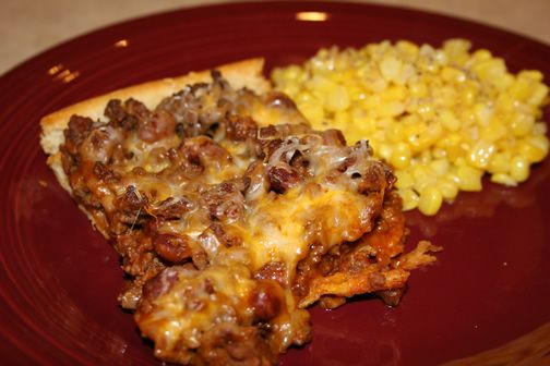 Preheat oven to 375. Brown beef and onion; drain. Spray 9" X 13" baking dish with non-stick cooking spray. Unroll crescent rolls (they will fit right inside pan). Pinch together to make crust. Bake for 6 minutes. Add beans and taco seasoning to beef; mix thoroughly. Top crust with meat mixture and bake an additional 10 minutes. Top with cheese and bake an additional 5 minutes.