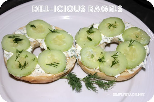 3. To serve: Toast, and if you choose, lightly butter bagel. Top with cream cheese and cucumber slices. Garnish with dill.