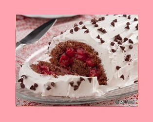 Unroll cake and remove towel. Spread cherry pie filling over top of cake, leaving a 1-inch border, and roll it up again. Place on a serving platter, frost with whipped topping, and sprinkle with chocolate chips. Cover loosely and chill at least 1 hour, or until ready to serve.