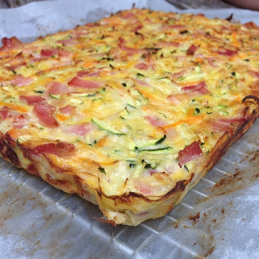 Beat the eggs in a large bowl the add nutmeg, salt, pepper and baking powder. Then softly stir all ingredients together. Place in lined tin and back for 25mins at 180 degrees. Then slice for lunch boxes.