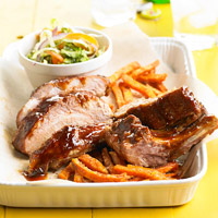 4. To serve, cut ribs into six portions or individual ribs. Spoon sauce over ribs. Makes 6 servings.