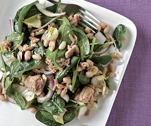 The bright, fresh combination of endive and spinach makes this salad an elegant lunch or light dinner. Water-packed canned tuna works fine, but oil-packed tuna has a richer, more satisfying flavor.