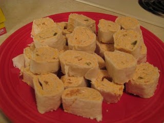 Roll tightly and wrap in plastic wrap and frig overnight. Slice before serving. Serve with Salsa.