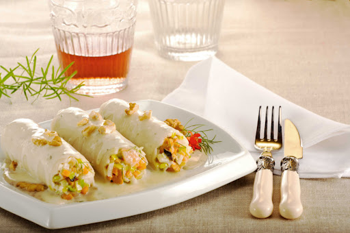 CANELONES RELLENOS DE MARISCOS EN SALSA DE HONGOS