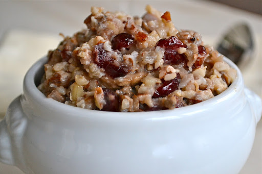 Place the dressing in a buttered 9-by-13-inch baking dish and bake, covered with foil, for 30 to 40 minutes, until the dressing is heated through. Serve hot.