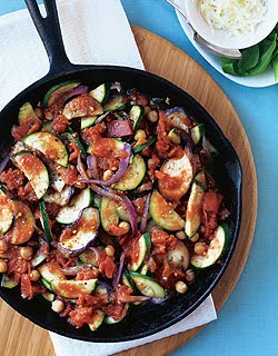 2. In same skillet, sauté onion for 2 minutes. Season with salt and pepper, add garlic and zucchini and continue cooking until onion is translucent.