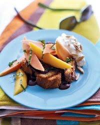 MAKE THE FRUIT SALAD: In a medium bowl, toss the mango and papaya with the basil and vanilla.