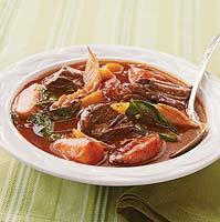3. In a medium bowl, whisk together broth, wine, tomato paste, tapioca, pepper, and garlic. Pour over mixture in cooker.