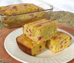 Combine flour, cornmeal, baking powder and salt; set aside. In another bowl, combine egg, corn, onion, peppers, buttermilk and 1-3/4 cups cheese. Stir corn mixture into flour mixture. Pour into a greased 10-in. ovenproof skillet. Bake at 350° for about 40-50 minutes or until bread tests done. Top with remaining cheese and remove from the oven. Yield: 8 servings.