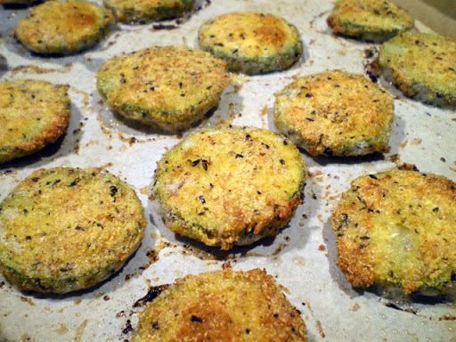 Brush 1 teaspoon olive oil on the bottom of an 8 by 8-inch baking dish. Arrange the slices of zucchini in the dish with an overlapping pattern in rows or a spiral in a pie dish. Sprinkle with salt, pepper and paprika.