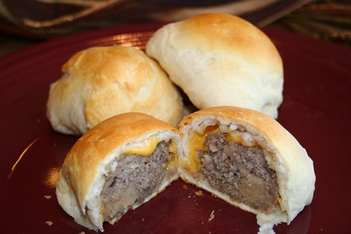 Heat oven to 375°F. Line cookie sheet with parchment paper, or spray with no-stick cooking spray. Separate dough into 5 biscuits. Split each biscuit to make 10 rounds. Press out each biscuit half to form 3-inch round.