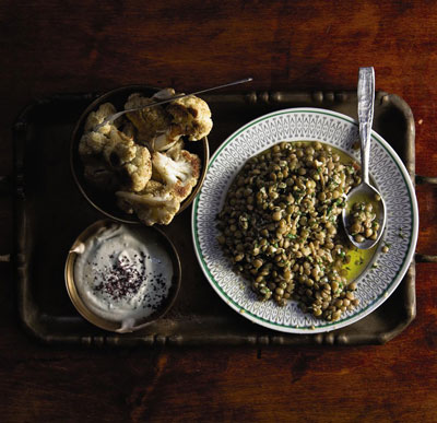 2. Meanwhile, combine tahini, garlic, lemon juice, and 1/2 cup water in a small bowl and season with salt. Serve cauliflower hot or at room temperature with tahini sauce.