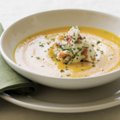 Fill a separate medium saucepan or stockpot with water, and bring to a boil over high heat. Add the asparagus spears and cook for 2-3 minutes, until the spears are bright green and barely tender. Remove the asparagus with a slotted spoon and transfer to a bowl filled with ice water to stop the cooking.