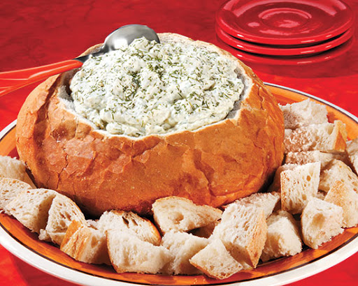 Place all the spices in the bottom of a large bowl. Add the water, stir and let stand about 5 minutes until the water is absorbed. Mix in the mayonnaise and sour cream. Cover and refrigerate for at least 2 hours. Serve in a bread bowl with bread chunks for dipping. Rye and pumpernickel work best. This also makes a great veggie dip.