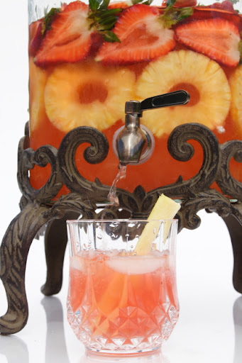 Serve Spa Water in wine glasses and garnish with a slice of pineapple
