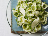Bring a large pot of well-salted water to a boil. (If you are making the pasta right after the pesto, just use the broccoli rabe blanching water.) Cook the pasta 1 minute less than the cooking time on the package.
