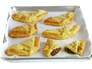 Using a pastry brush, brush the folded-over section lightly with the beaten egg. Fold the opposite corner over the egg-brushed pastry to form an open-ended Danish. Brush the pastry with beaten egg and bake until puffed and golden, about 15 minutes.