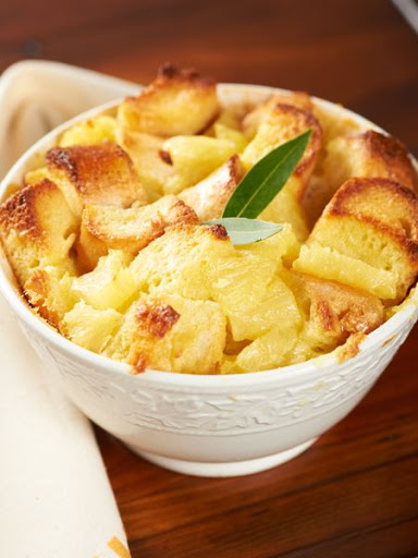 Use a spatula to fold in the bread and pineapple (plus the juice).