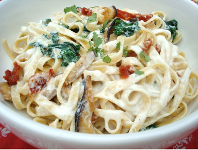 Fettuccine Alfredo with Shitake Mushrooms & Kale