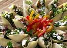4. Stuff salad into cooled shells (now you understand why you chopped the ingredients into small pieces.)