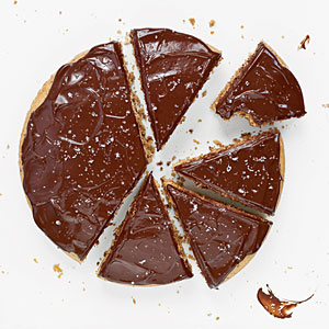 Microwave at MEDIUM 1 minute or until chocolate melts, stirring every 15 seconds. Spread chocolate mixture over top of cake; sprinkle evenly with sea salt. Cut into 8 wedges.