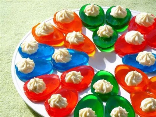 Pour the Jello mixture in a deviled egg holder and put in the fridge.