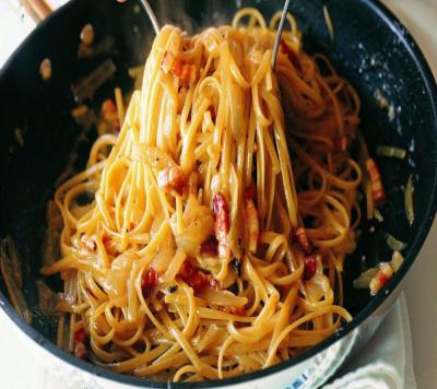 Linguine alla Carbonara - Linguini with Bacon and Onions