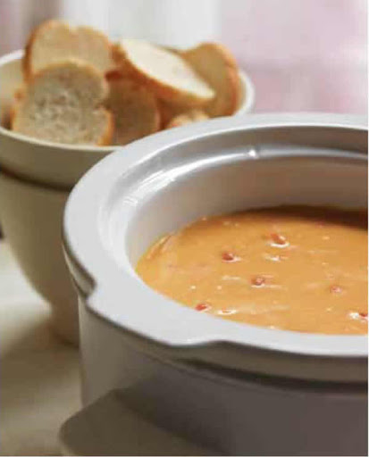 Oil the crock of a 1 1/2 to 2 quart slow cooker. Add the purée and the remaining ingredients and cook on low for 1 to 1 1/2 hours, or until the cheese is fully melted.