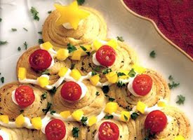 Place trees on serving platters. Spoon potato topper into resealable plastic bag. Cut 1/4-inch hole in bottom corner of bag; pipe over trees.