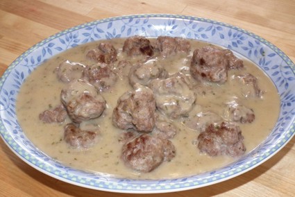 Mix beef, bread crumbs, onion, egg and salt; shape into meatballs. The recipe makes 28 meatballs using the small meatball press. In frying pan, brown meatballs on all sides; pour off fat. Mix soup, water and parsley, pour over meatballs. Cover; cook over low heat 20 minutes, stir occasionally. Remove meatballs to serving dish, increase heat and simmer uncovered until gravy is of desired consistency.