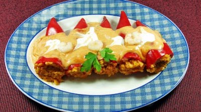 Para disminuir el valor calórico y la grasa del plato, se pueden tomar los pimientos sin rebozar y sustituir la bechamel por salsa de tomate