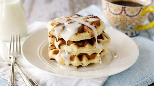 Cinnamon Roll Waffles with Cream Cheese Glaze