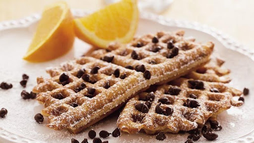 3 Bake about 2 minutes or until steaming stops and "toast" is golden. Carefully remove waffle toast. Sprinkle each waffle with 1 tablespoon chocolate chips and powdered sugar.