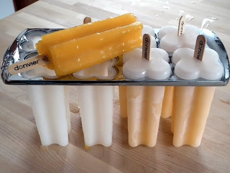 Dissolve Crystal Light and sugar free Jello in boiling water. Add cold water, pour into Donvier Frozen Pop molds. Add sticks and freeze.