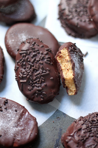 Carefully dip each egg in the melted chocolate. I did this by placing each egg of a fork, then quickly dipping it in the chocolate and pulling it pack out, letting the excess chocolate drip back into the bowl.