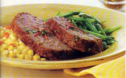 In a bowl, combine the glazed ingredients, and stir well. Spread the glaze over the top of loaf, and bake uncovered for 45 mintues. Remove from oven, slice, and serve.