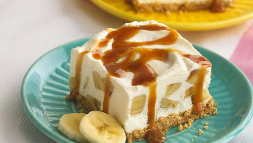 Remove from freezer and let stand 10 to 15 minutes before serving. For squares, cut into 3 rows by 3 rows. Top each square with about 1 teaspoon caramel topping. Store covered in freezer.