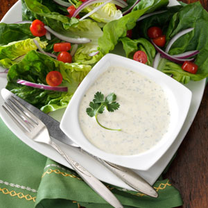 In a food processor or blender, place cilantro, buttermilk, mayonnaise, sugar and hot pepper sauce; cover and process until smooth. Serve over greens and vegetables. Store in the refrigerator.